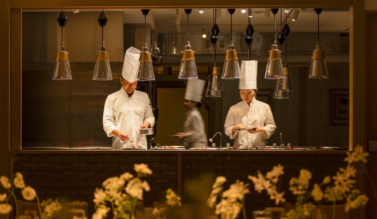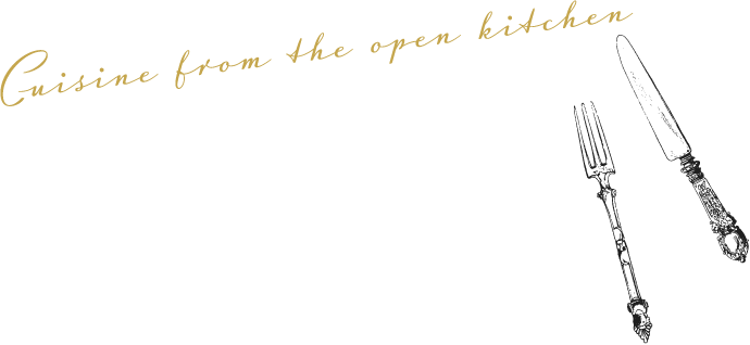 3面フルオープンのキッチン、 美味しい音と香りでゲストの五感を刺激します