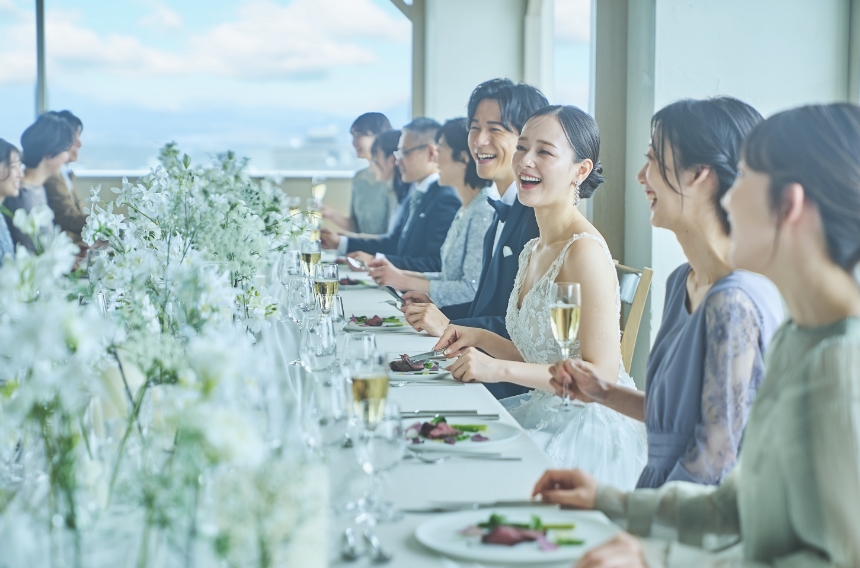 - ございません。会場は昼と夕方の最大2組様までとなりますので、他の花嫁と顔を合わせるようなスケジュールはなく、安心してお過ごしいただけます。